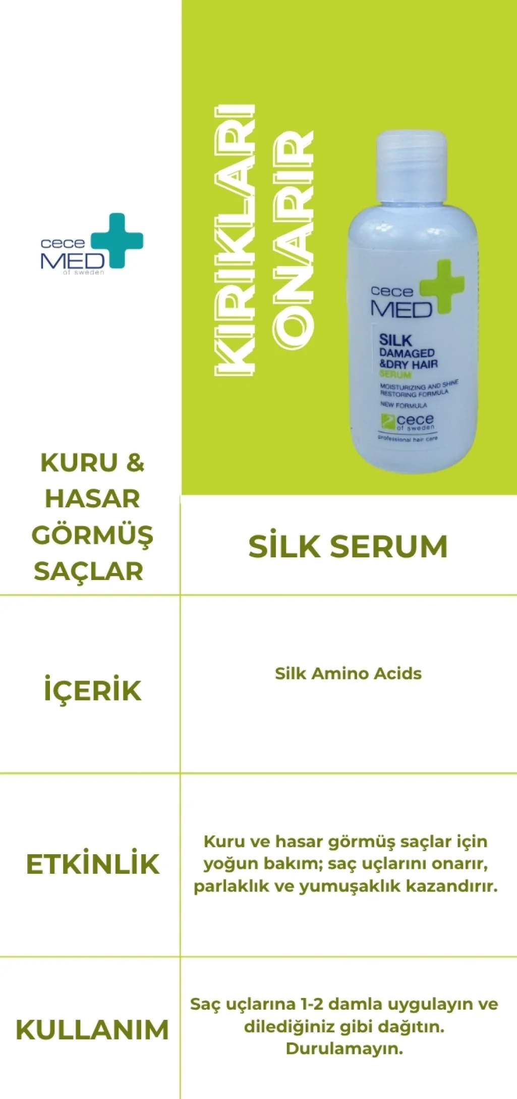 Cecemed Silk Damaged And Dry Hair Serum Kuru ve Hasarlı Saçlar İçin Bakım Serumu 20 ml