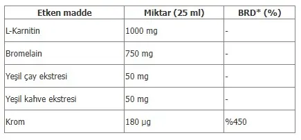 Bromelain, L-Karnitin, Krom ve Yeşil Çay Ekstresi içeren takviye edici gıda.