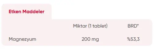 Magnezyum yorgunluğun ve bitkinliğin azalmasına, normal enerji oluşum metabolizmasına, sinir sisteminin normal işleyişine, normal kas fonksiyonuna, normal kemiklerin ve normal dişlerin korunmasına katkıda bulunur.