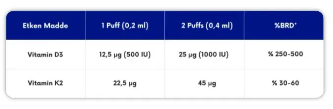 Tavsiye edilen günlük kullanım miktari 4-10 yaş arası çocuklarda günde 1 puf, 11 yaş üstü yetişkinlerde 2 puftur.