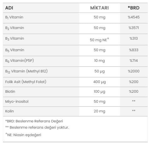 Ocean B Complex içeriğindeki 8 farklı B grubu vitaminine ek olarak Kolin ve İnositol içeren kompleks bir destektir.