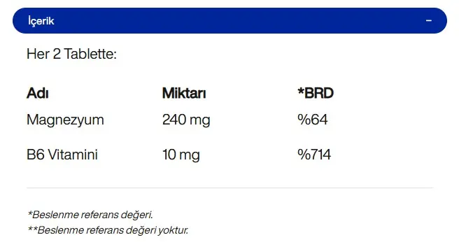 - Tavsiye edilen günlük alım miktarı, 11 yaş ve üzeri bireyler için 2 tablet tüketilmesi şeklindedir.