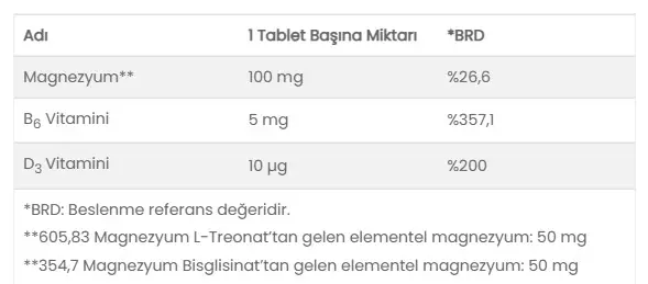 Ocean ExtraMag ThreoG® tablet magnezyum l-treonat ve magnezyum bisglisinat’dan gelen 200 mg elementel magnezyum içermektedir.