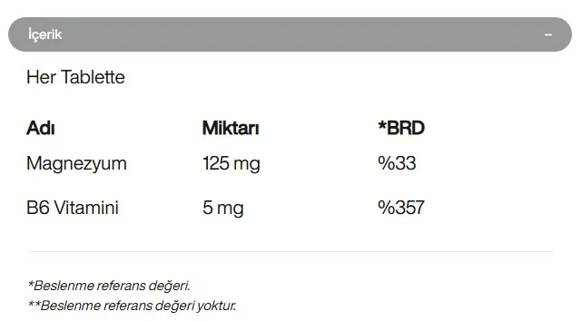 Tavsiye edilen günlük alım miktarı, 11 yaş ve üzeri bireyler için 1 veya 2 tablet tüketilmesi şeklindedir.