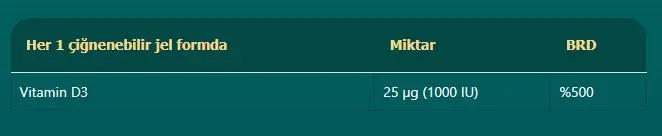 Yetişkinler tarafından günde 1 çiğnenebilir jel form tüketilmesi önerilir.