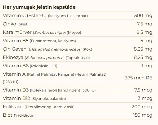 Bağışıklığınızı destekleyen bileşenlerin en üst düzey kombinasyonunu sunar.