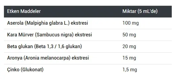 Beta Glukan ve Kara Mürver Ekstresi Likit Takviye Edici Gıda,