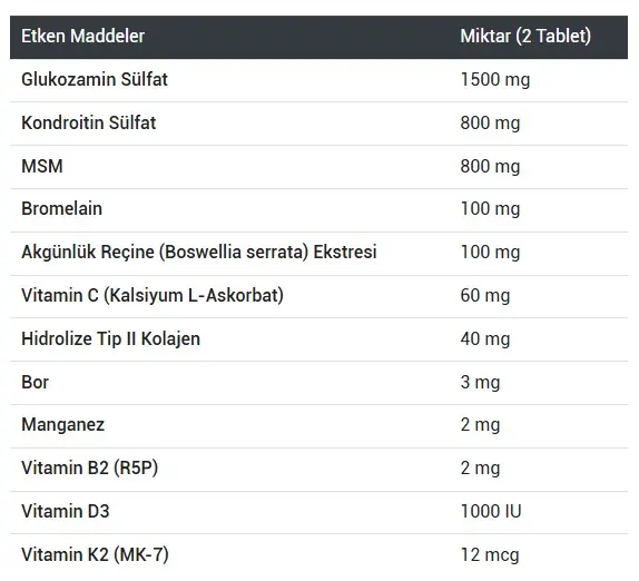 Glukozamin Kompleks içeren takviye edici gıdadır.